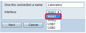 Étape 3. Dans la zone Interface, cliquez sur le menu déroulant et choisissez l'interface à activer pour cette connexion. Les options sont les suivantes :