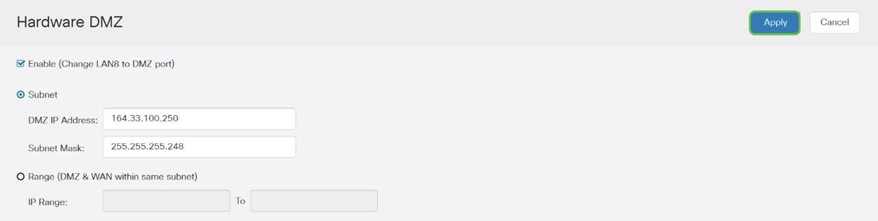 Étape 6. Cliquez sur Apply (Appliquer) (dans le coin supérieur droit) pour accepter les paramètres DMZ.