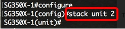 SG350X-2#configureÉtape 3. Pour entrer le contexte de l'unité de pile spécifiée ou de toutes les unités de pile, entrez la commande stack unit en mode de configuration globale en saisissant ce qui suit :