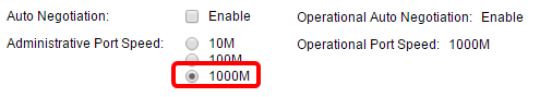 Étape 12. Si la négociation automatique n'est pas activée, la zone Administrative Port Speed devient disponible. Sélectionnez une case d'option pour déterminer la vitesse du port ; les vitesses disponibles varient selon le type de port. La zone Operational Port Speed affiche la vitesse actuelle du port.