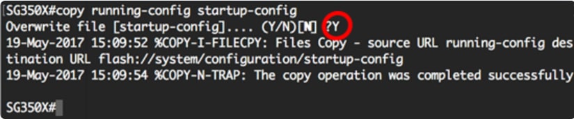 Étape 5. (Facultatif) Appuyez sur Y pour Oui ou N pour Non sur votre clavier une fois que l'invite Overwrite file [startup-config]... s'affiche.