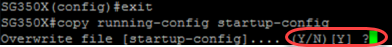 Étape 4. Appuyez sur Y pour enregistrer les paramètres dans la configuration de démarrage du commutateur.