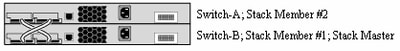 Le numéro de membre de pile du commutateur A change depuis qu'il est en conflit avec le commutateur B. Le commutateur A choisit le numéro de pile disponible le plus bas, dans ce cas, le numéro 2.