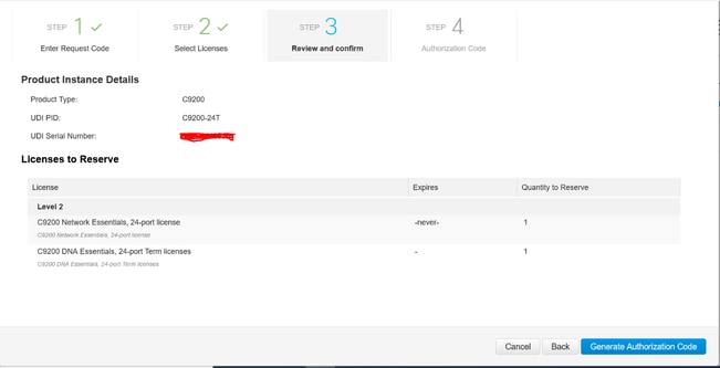 7. Avec l’utilisation du fichier CSV généré précédemment à partir du centre DNA, générez un code d’autorisation à partir du CSSM. Ce code d'autorisation permet l'utilisation d'une licence DNA permanente, sur un appareil qui n'a pas accès à Internet.