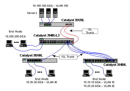 Exemples de configuration de Catalyst 2948G-L3 S - réseau VLAN unique, réseaux VLAN multiples et réseaux VLAN multiples avec couche de distribution connectée au cœur du réseau