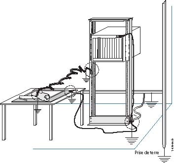 La Figure 4 illustre comment vous devez veiller à être correctement relié à la terre avant de manipuler le châssis.