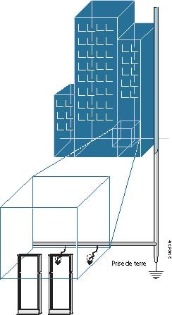Figure 1 Bâtiment dont la pièce logeant le bâti est reliée à la terre