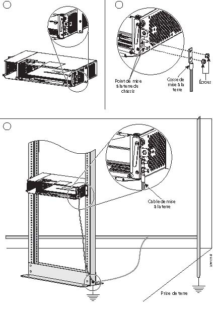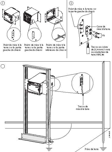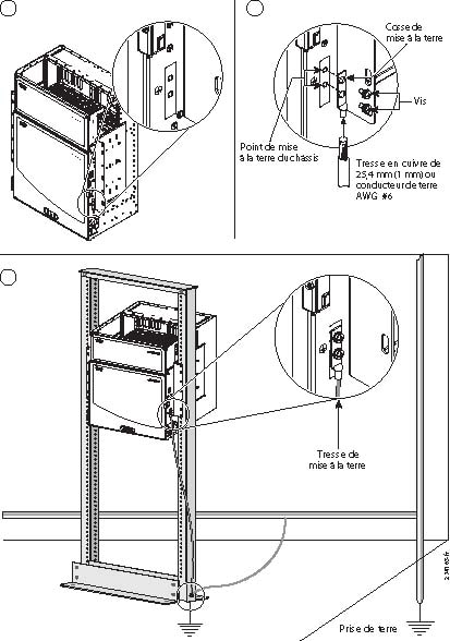 Les points de mise à la terre des châssis Cisco ONS 15600 ANSI et ONS 15600 ETSI sont déjà reliés aux points de mise à la terre de la baie.