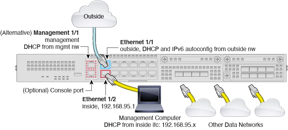 Lorsque vous effectuez la configuration initiale à l’aide de FDM, toutes les configurations d’interface terminées dans FDM sont conservées lorsque vous passez à FMC pour la gestion, en plus des paramètres de gestion et d’accès FMC. Notez que les autres paramètres de configuration par défaut, tels que la politique de contrôle d'accès ou les zones de sécurité,