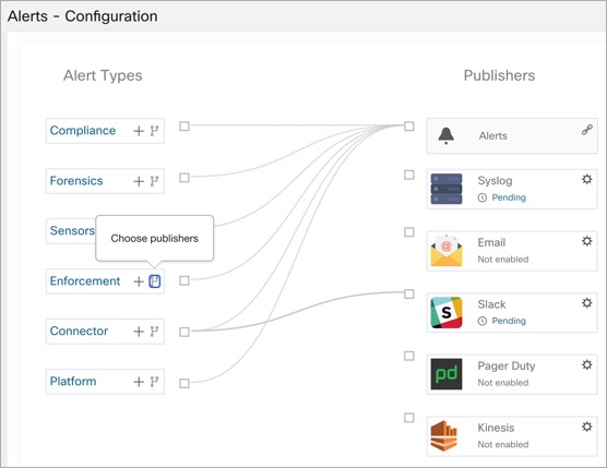 Application Alerts : une application Cisco Secure Workload implicite qui envoie les alertes générées à un surveilleur de données configuré. L’application Alerts gère des fonctionnalités telles que la répétition et la sourdine.
