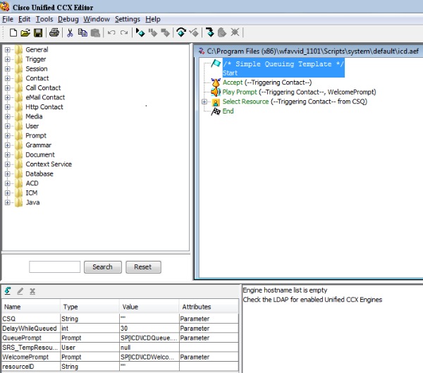 Dall'applicazione Cisco Unified CCX Editor, aprire uno script esistente contenente un passaggio Select Resource.