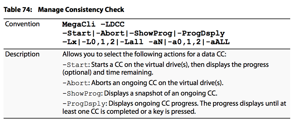 #MegaCli64 -AdpCCSched -SetSTartTime 20171028 02 -All