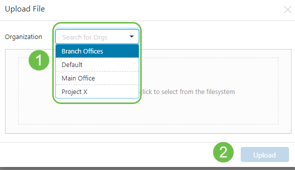 Se si dispone di più organizzazioni, sarà necessario fare clic sulla freccia dell'elenco a discesa per selezionare l'organizzazione appropriata. Questa immagine verrà elencata solo per i dispositivi di tale organizzazione.