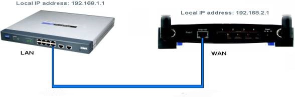 2. Collegare il cavo Ethernet dal router VPN alla porta Internet del router wireless (LAN-WAN). I router si troveranno su subnet diverse.