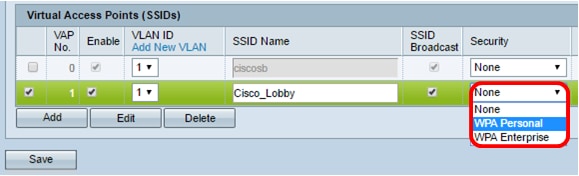 Passaggio 3. Fare clic su WPA Personale dall'elenco a discesa Protezione.