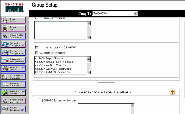 Per applicare gli attributi RADIUS e TACACS+ preformattati al server ACS, completare la procedura descritta nella sezione Attributi RADIUS e TACACS+ del dominio virtuale.