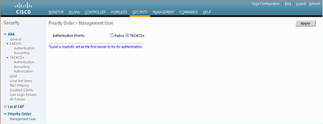 (Cisco Controller) >config aaa auth mgmt tacacs local