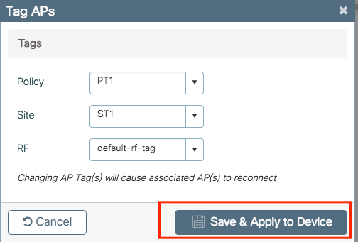 Selezionare i tag da assegnare agli access point e fare clic su Salva e applica al dispositivo.