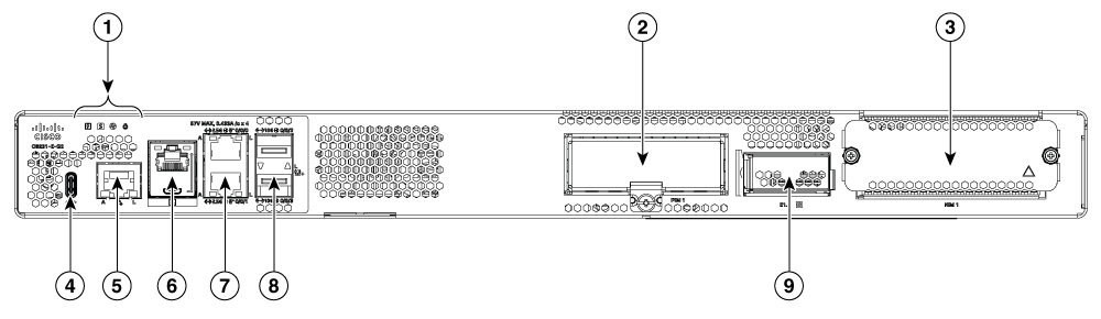 In questa sezione sono riportate le viste dei pannelli anteriore e posteriore dei dispositivi Cisco serie 8200 Secure Router, con le posizioni delle interfacce di alimentazione e dei segnali, gli slot delle interfacce, gli indicatori di stato e le etichette di identificazione dello chassis.