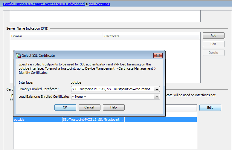 Configuration > Remote Access VPN > Advanced > SSL Settings.Edit.
