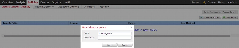 Identity Policy(左上隅)をクリックし、前の手順で設定したIdentify Policyを選択し、次の図に示すようにOKボタンをクリックします。