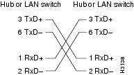 図1-5 クロス ケーブルのピン割り当て -- ハブとリピータ間の PA-8E RJ-45 接続