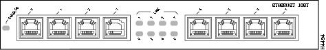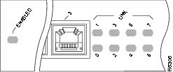 PA-8E には、他のすべてのポート アダプタと同様に、各ポートのステータス LED および 1 つの ENABLED LED が付いています。システムの初期化が終了すると、ENABLED LED が点灯し、PA-8E が動作可能であることを示します。図1-2 に PA-8E の LED を示します。
