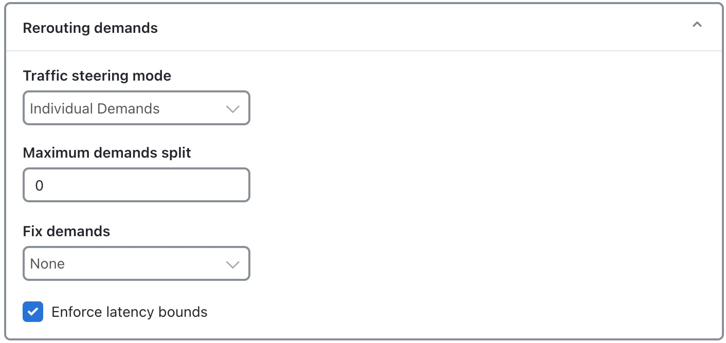 [SR LSP ごとの最大セグメントリストホップ(Maximum segment list hops per SR LSP)]:最適化後に任意のセグメントリストに含めることができるセグメントリストホップの最大数。値が指定されていない場合、Cisco Crosswork Planning は、SR LSP を最適化するために必要な数のホップを作成します。