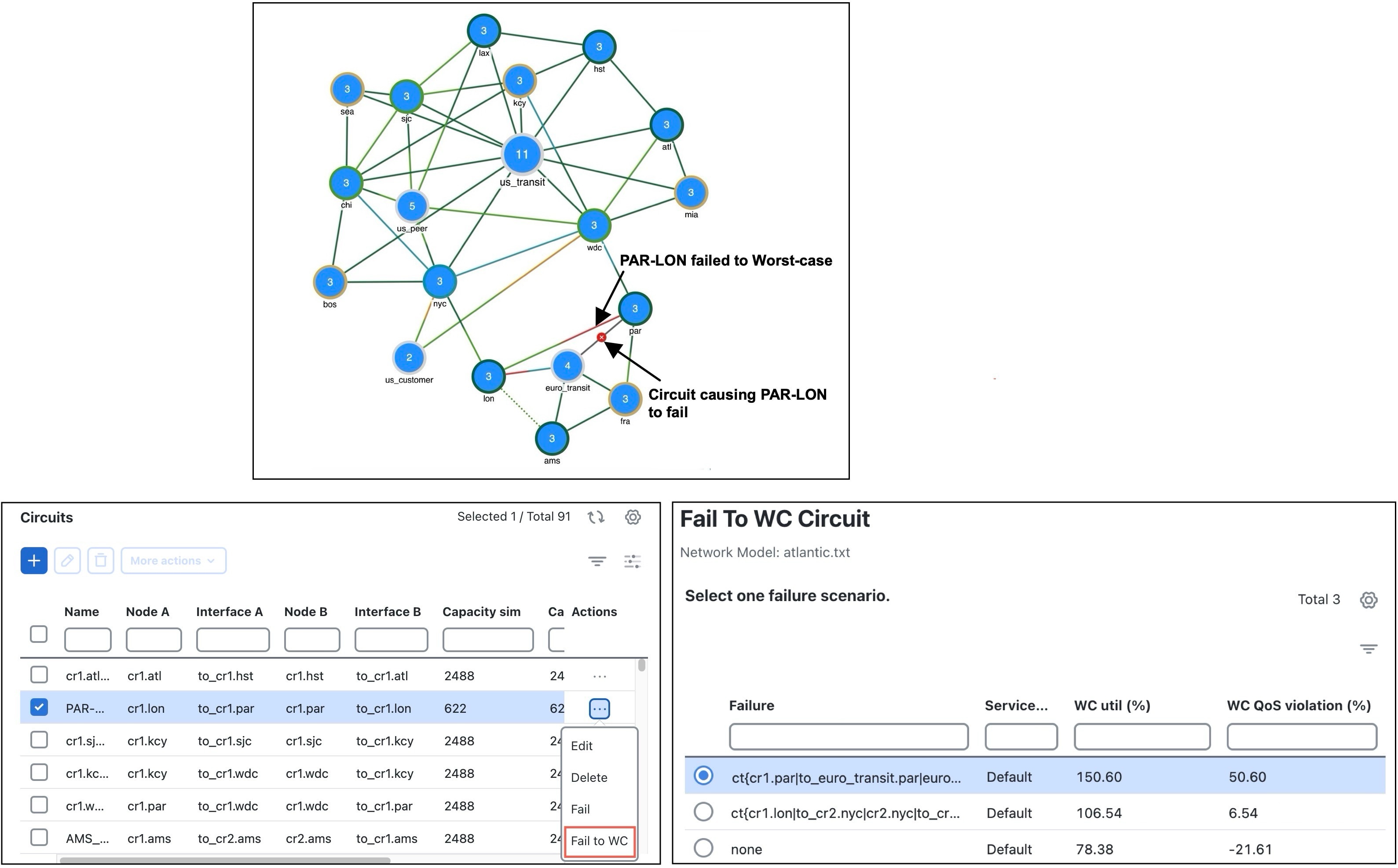 [ワーストケースのインターフェイス(または回線)を引き起こす障害(Fail to WC Interface (or Circuit))] ページが表示されます。