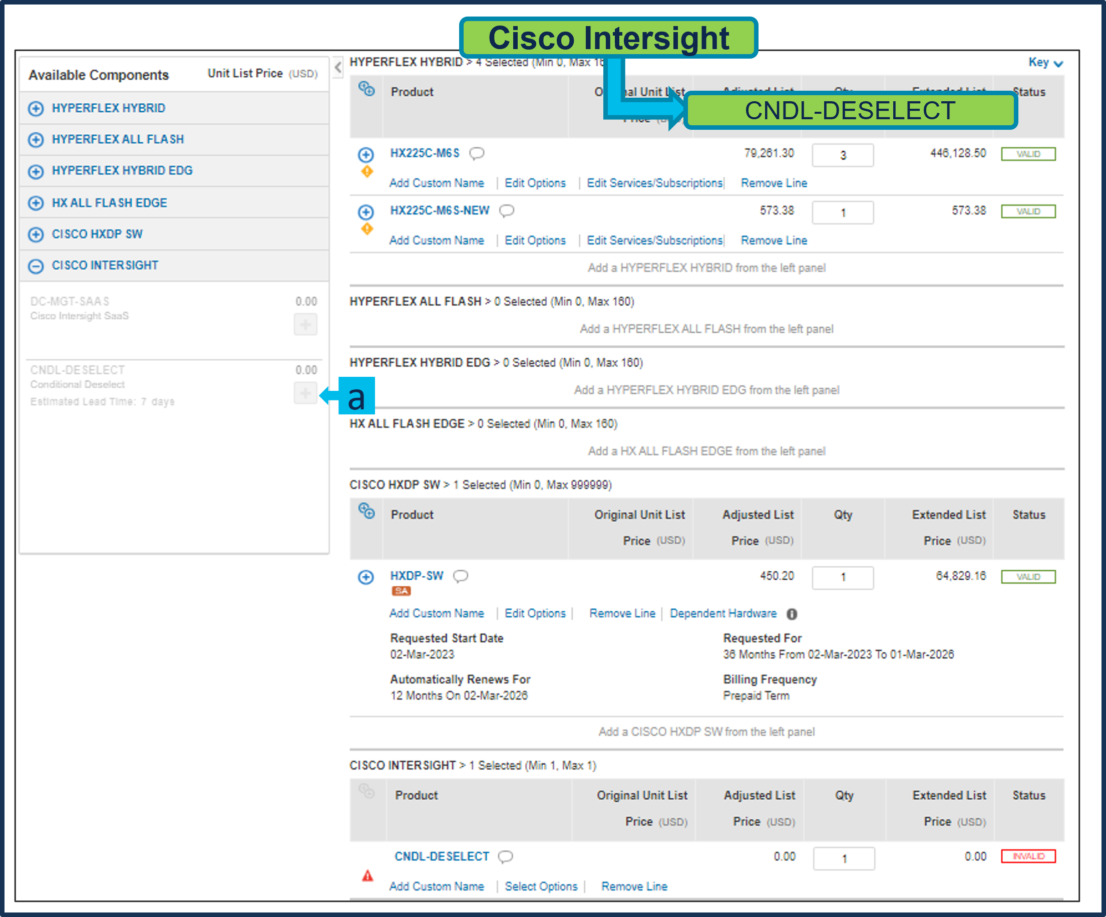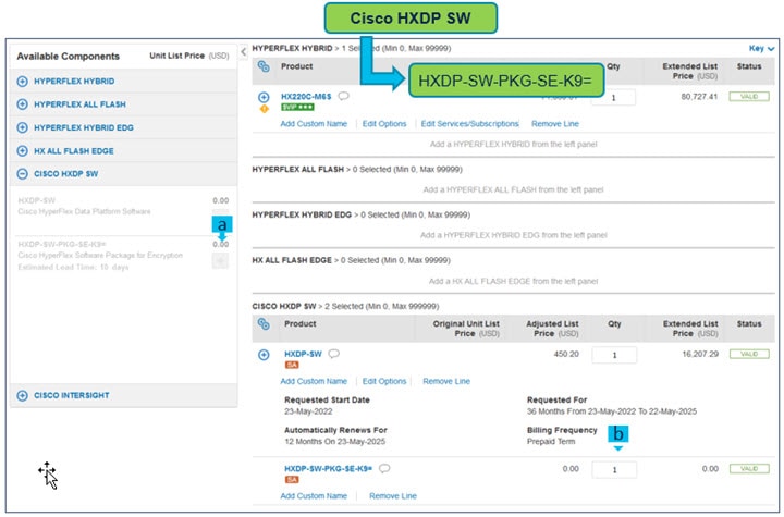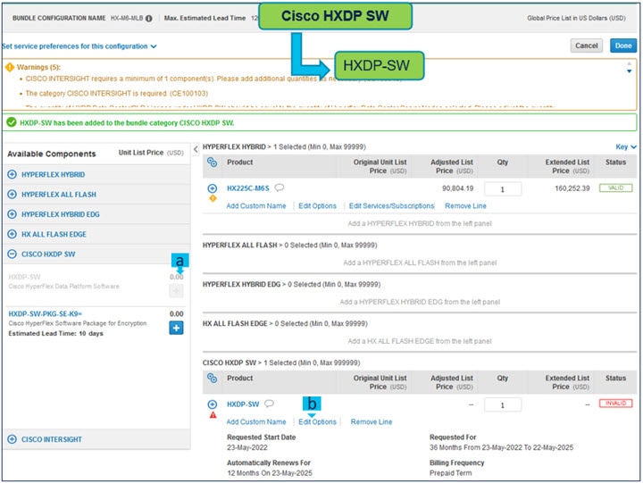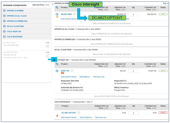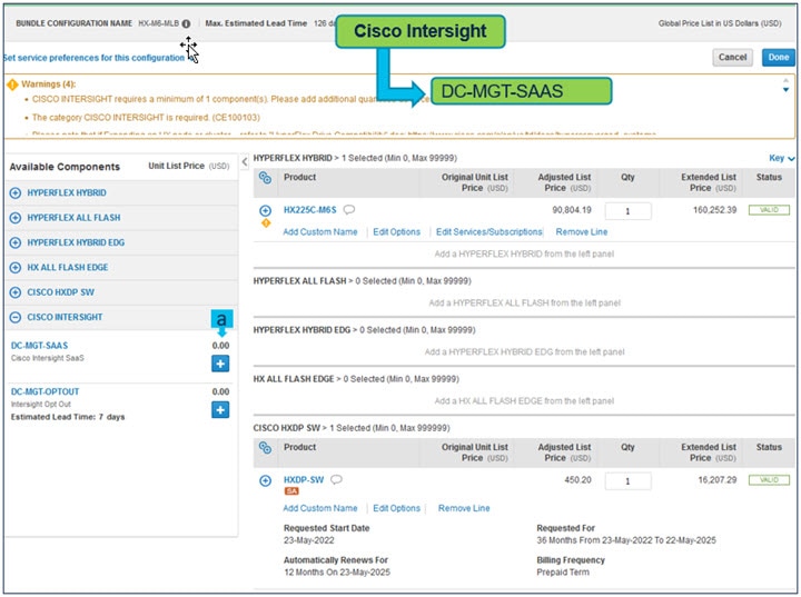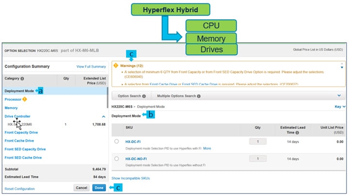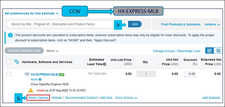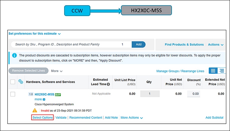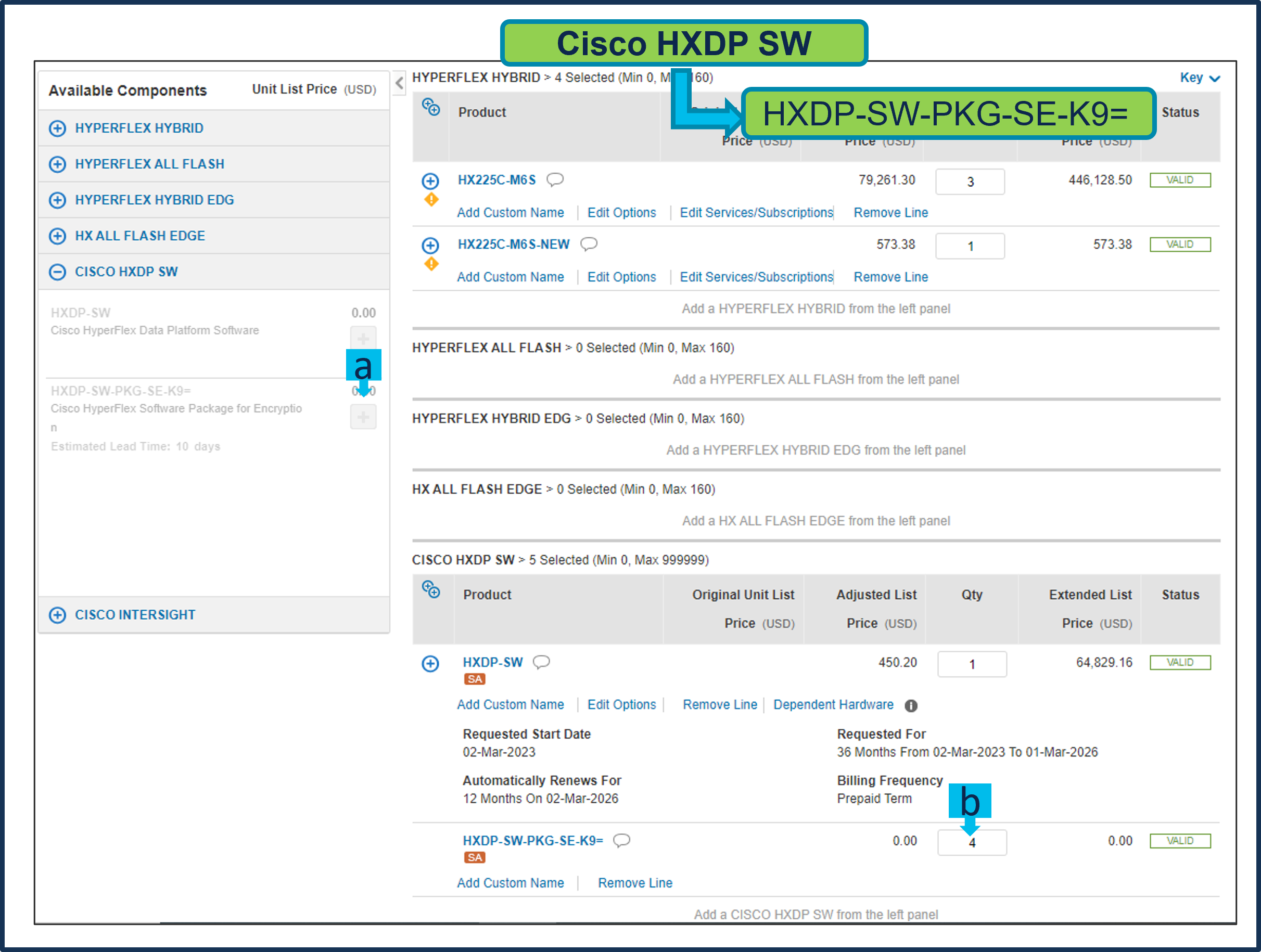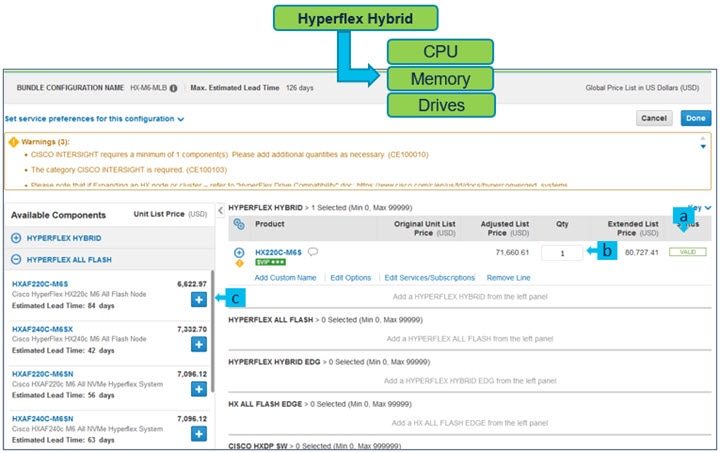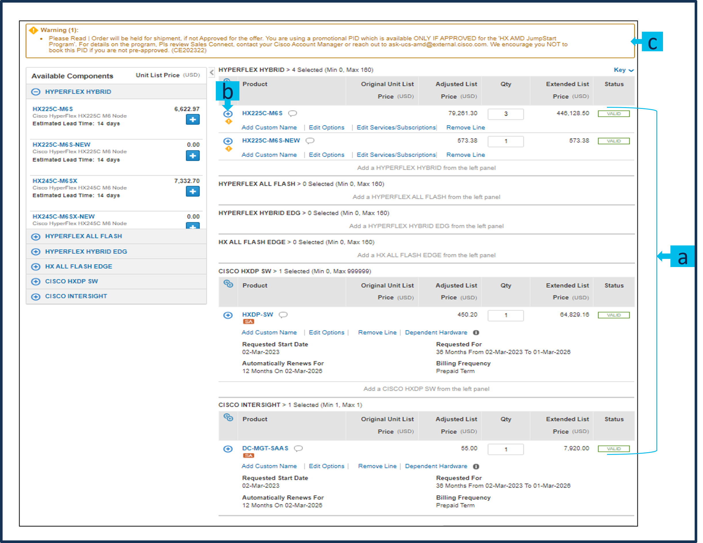 リスト ページで、SKU、PID、製品の説明、または製品ファミリ(HCIX-M7-MLB など)を入力して、この見積の基本設定を行い、 HX-M6-MLB注文する HCI 製品を検索します。
