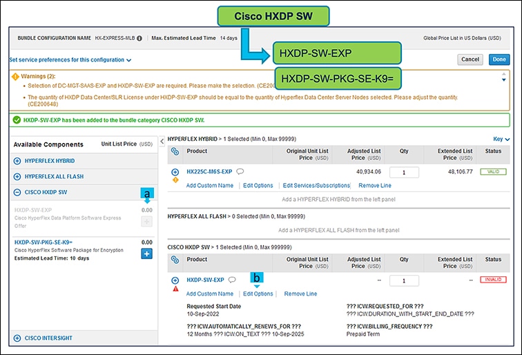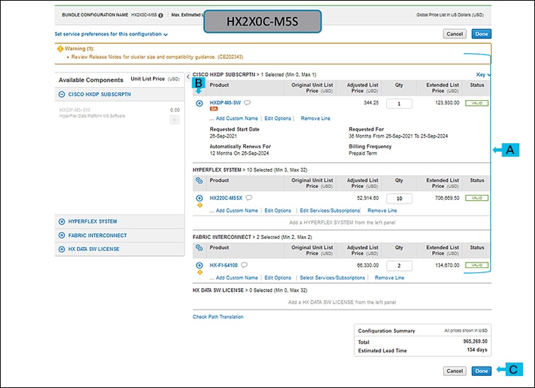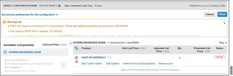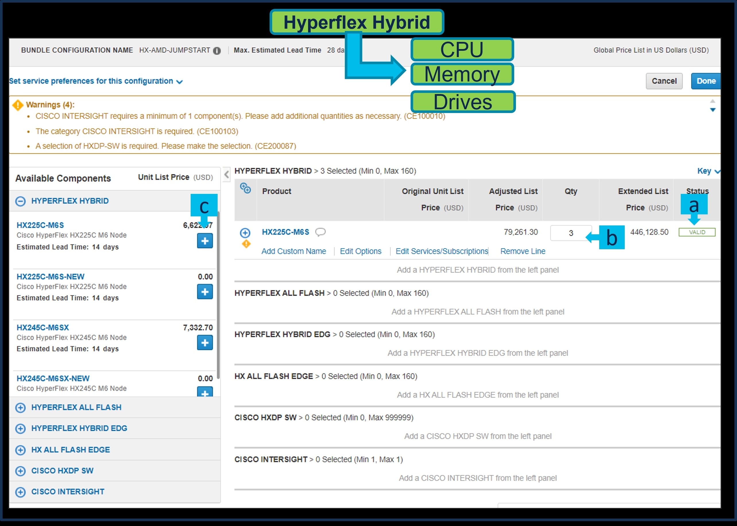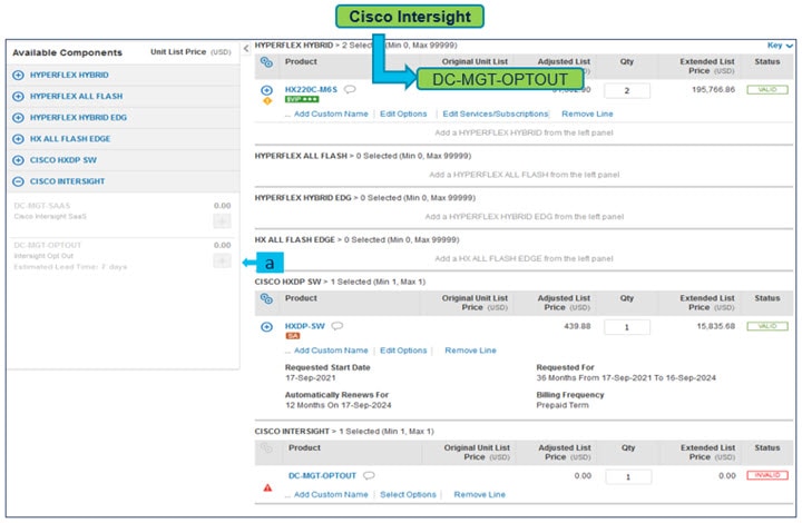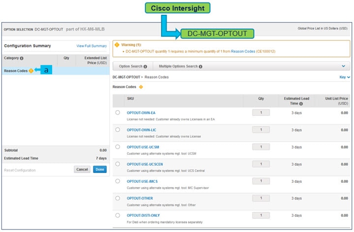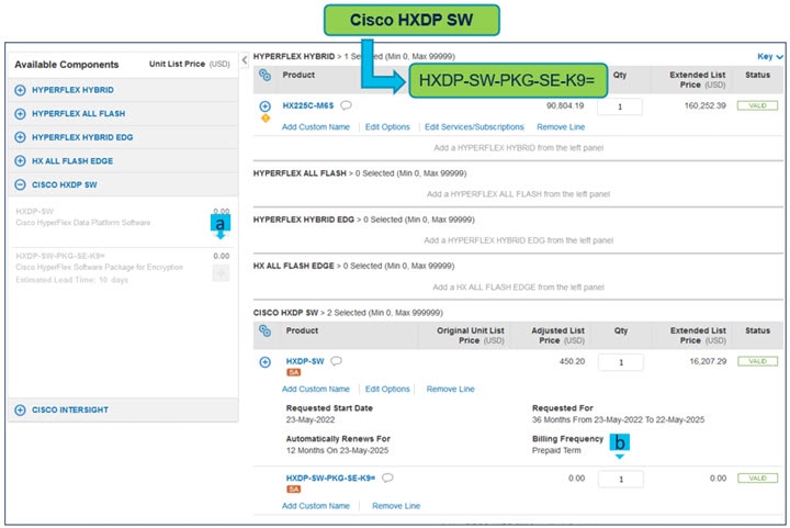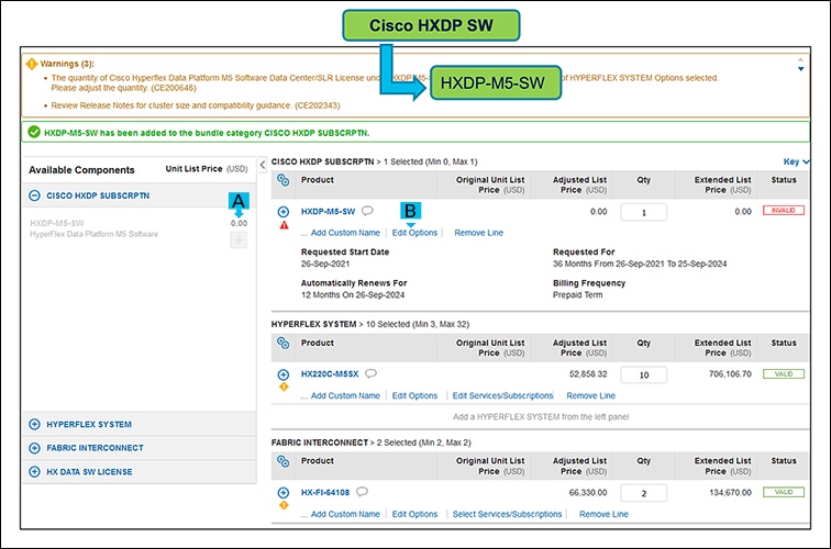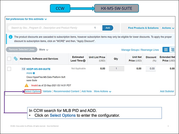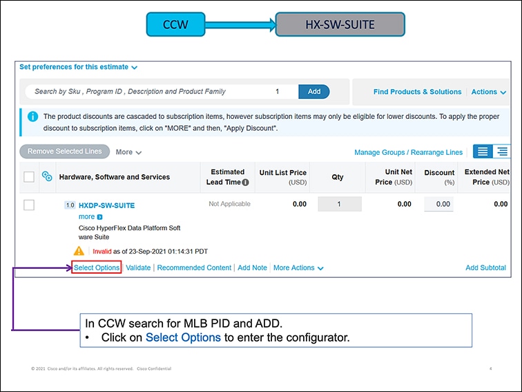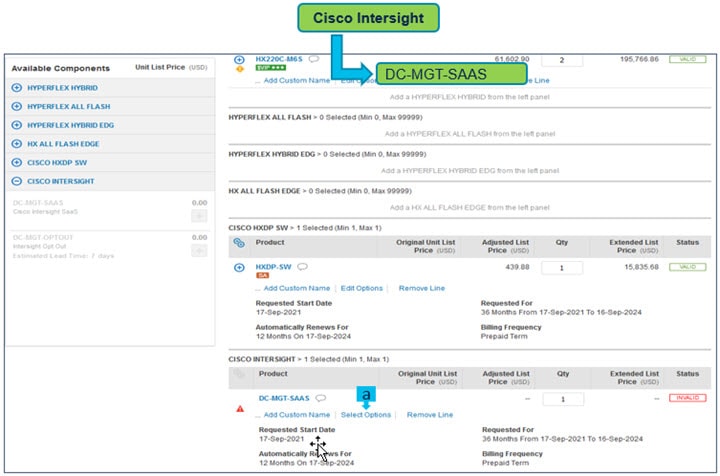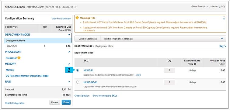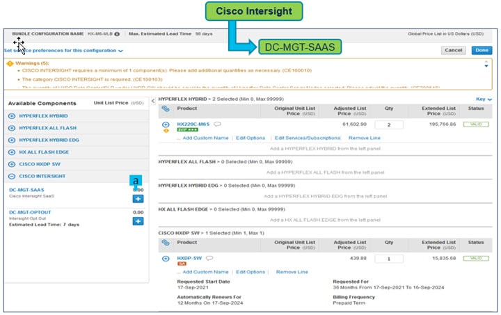 リスト ページで、SKU、PID、製品の説明、または製品ファミリ(HCIX-M7-MLB など)を入力して、この見積の基本設定を行い、 HX-M6-MLB注文する HCI 製品を検索します。