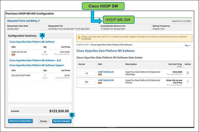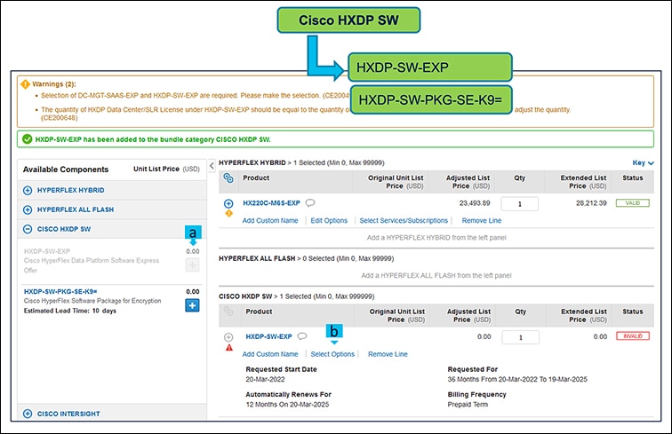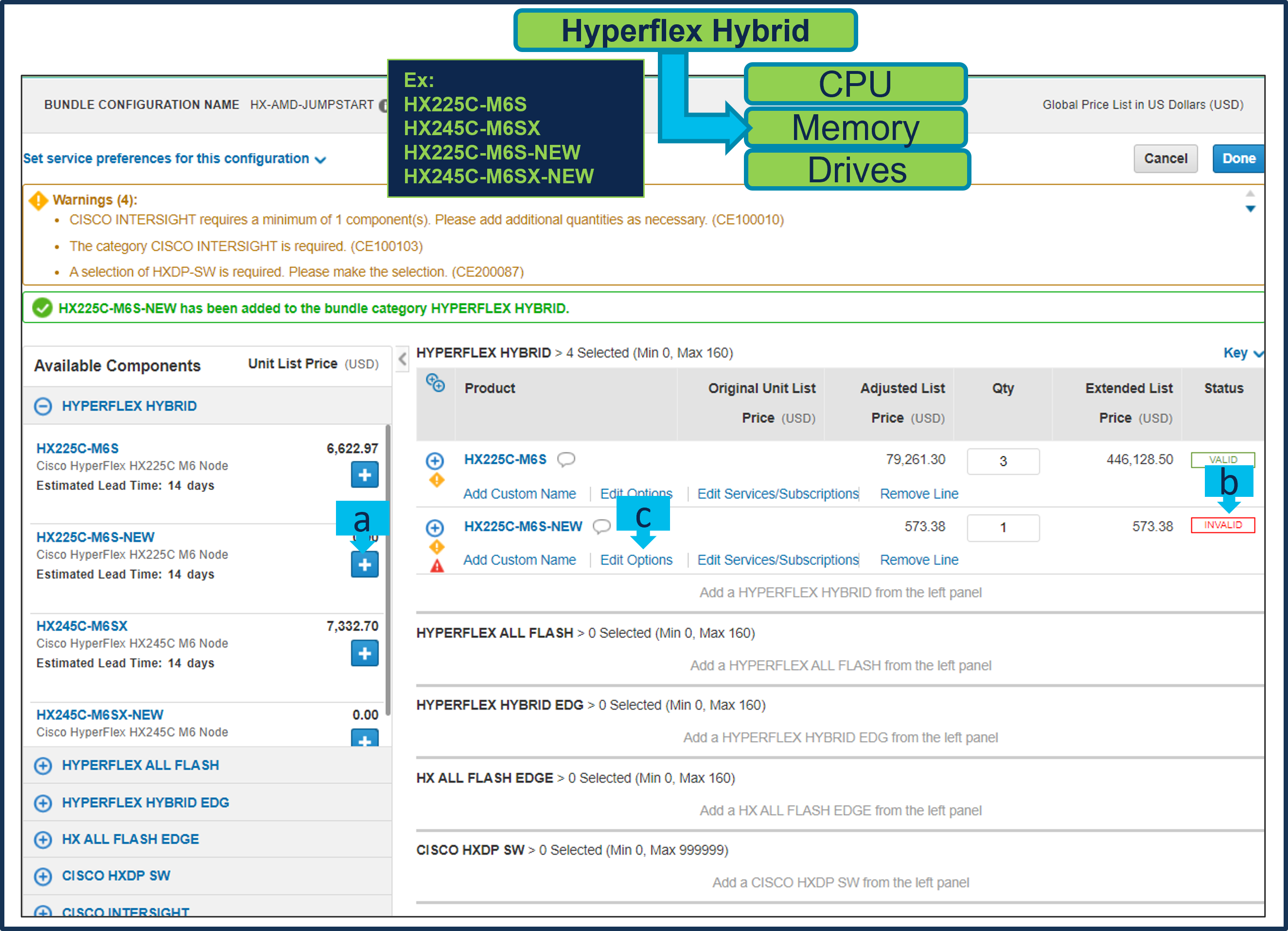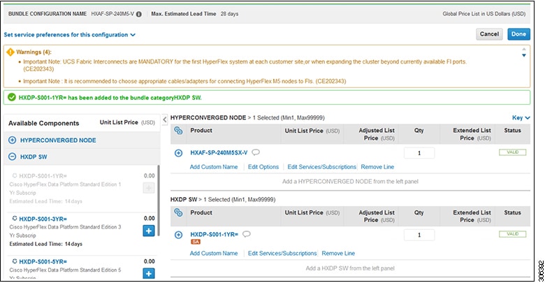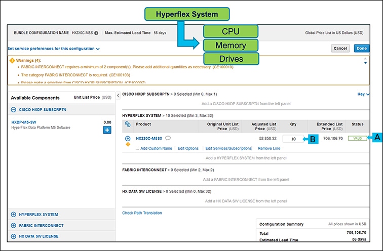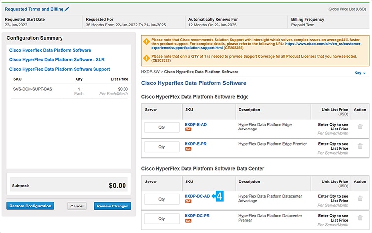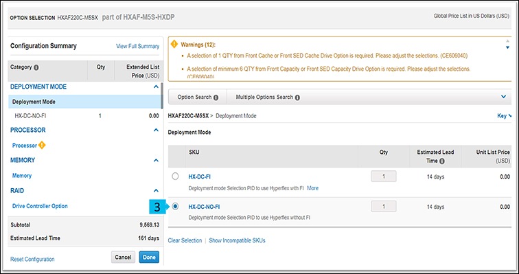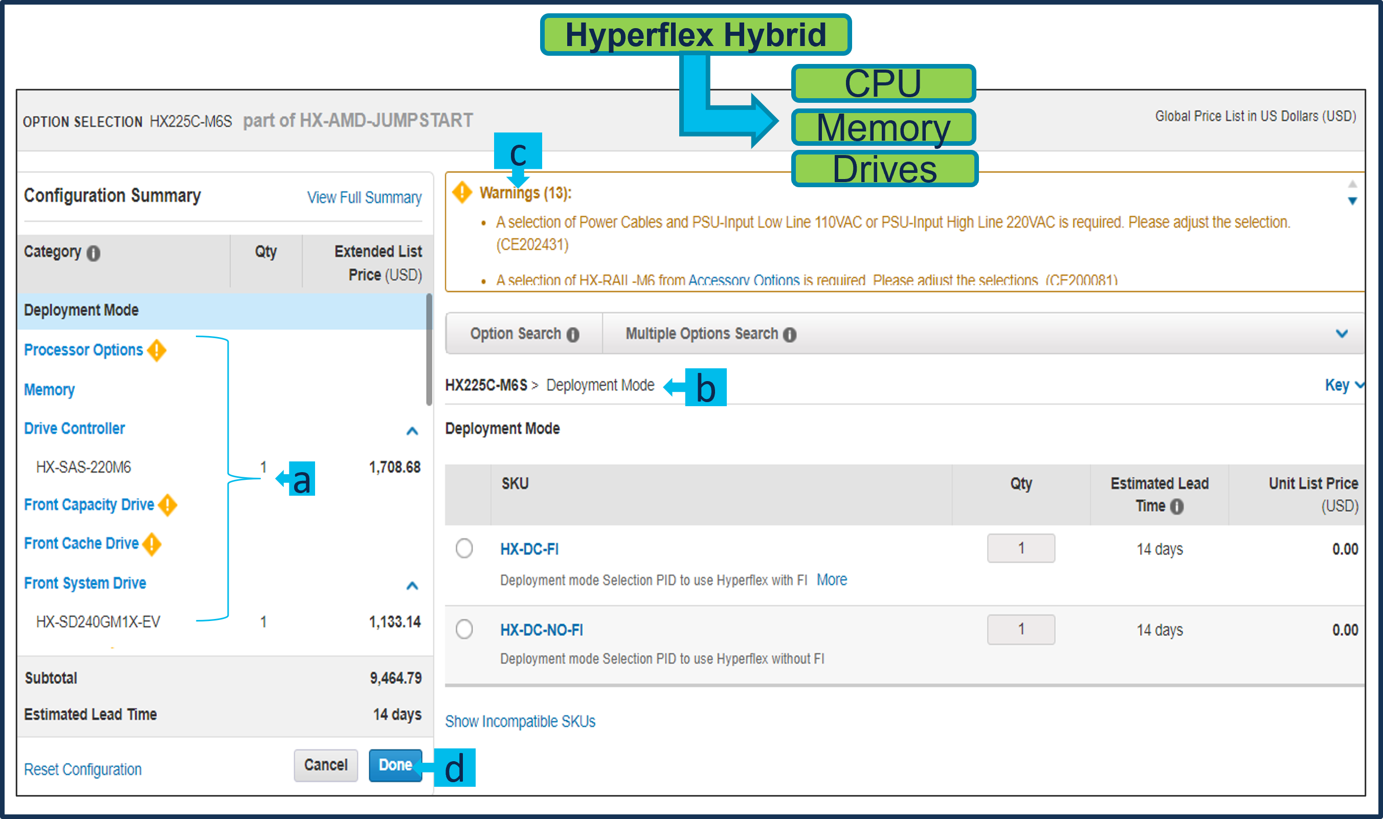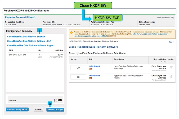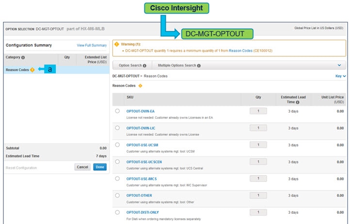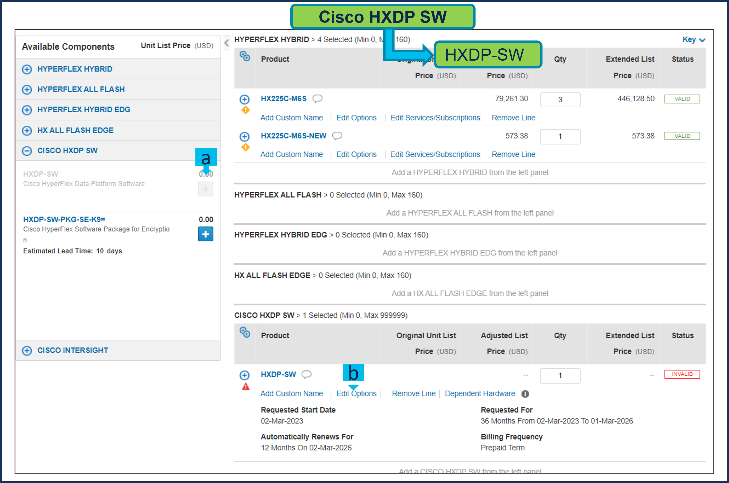 リスト ページで、SKU、PID、製品の説明、または製品ファミリ(HCIX-M7-MLB など)を入力して、この見積の基本設定を行い、 HX-M6-MLB注文する HCI 製品を検索します。