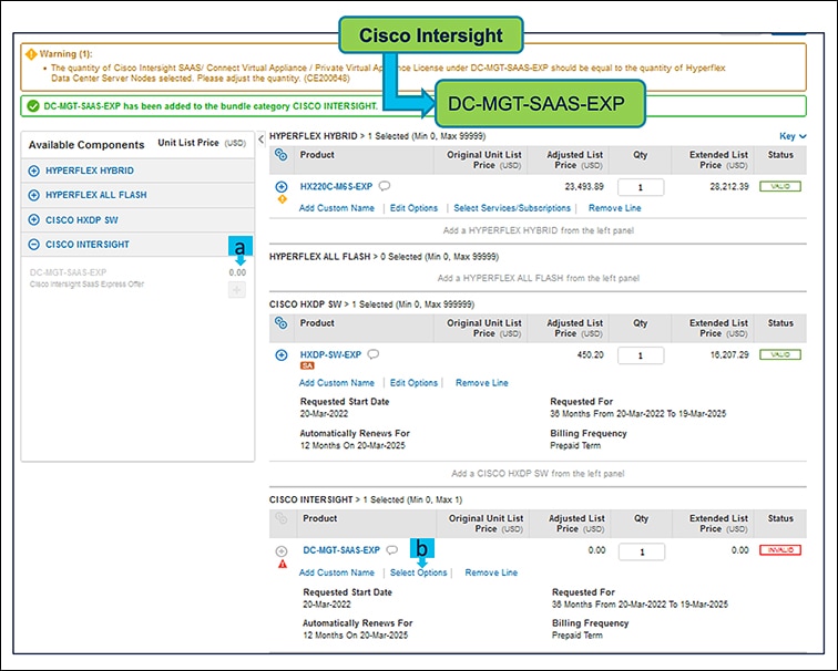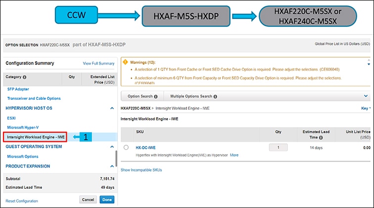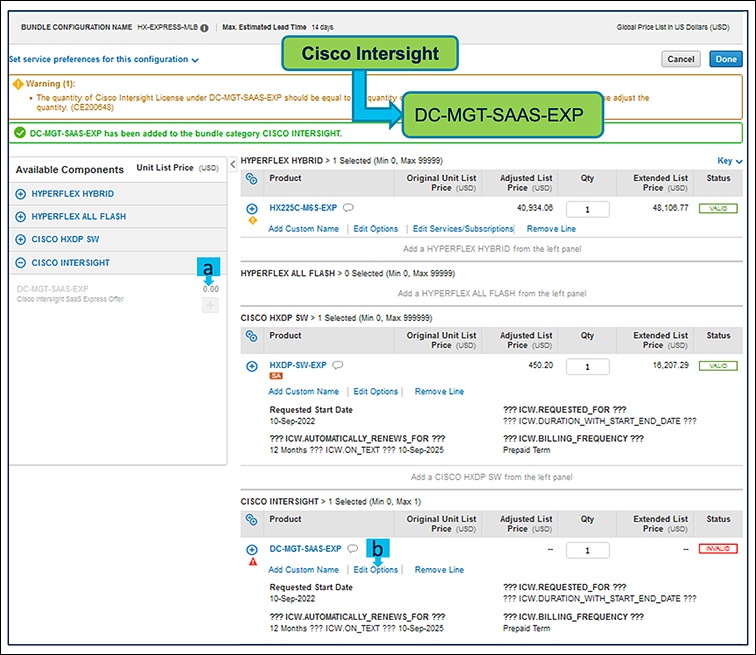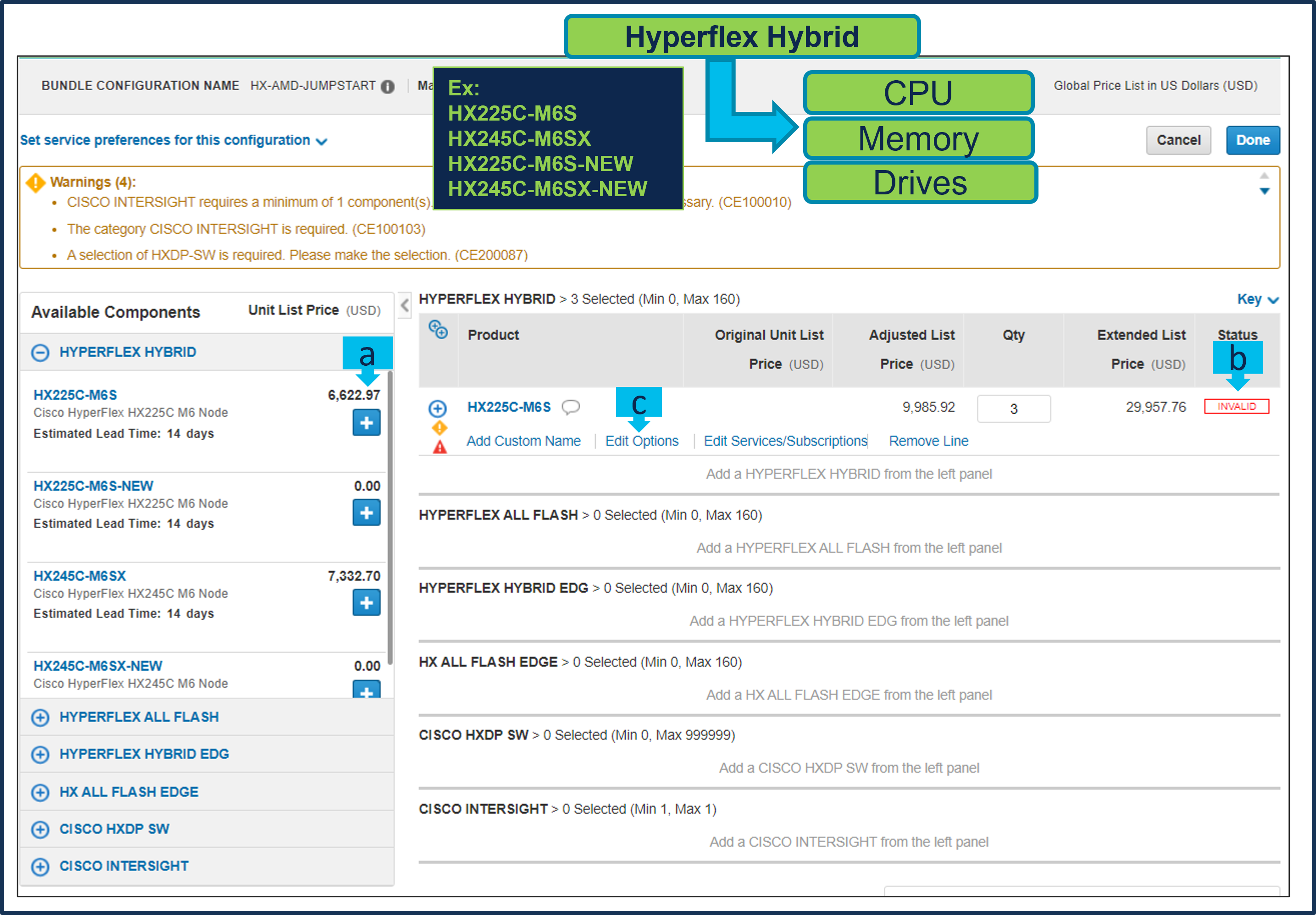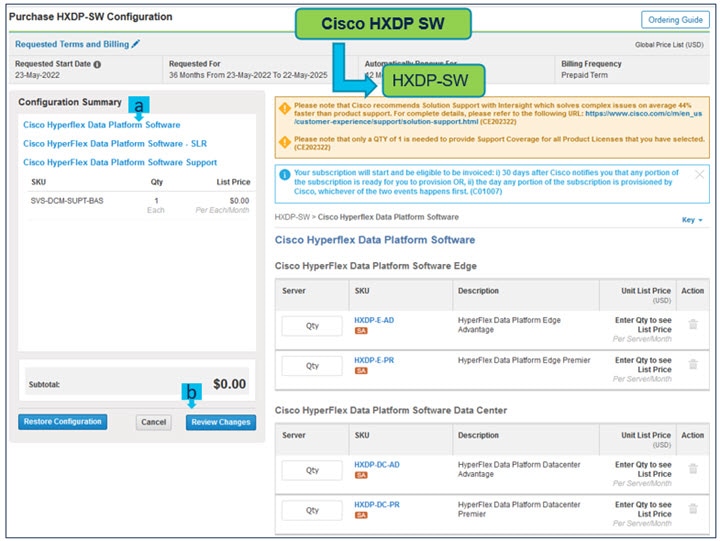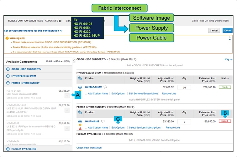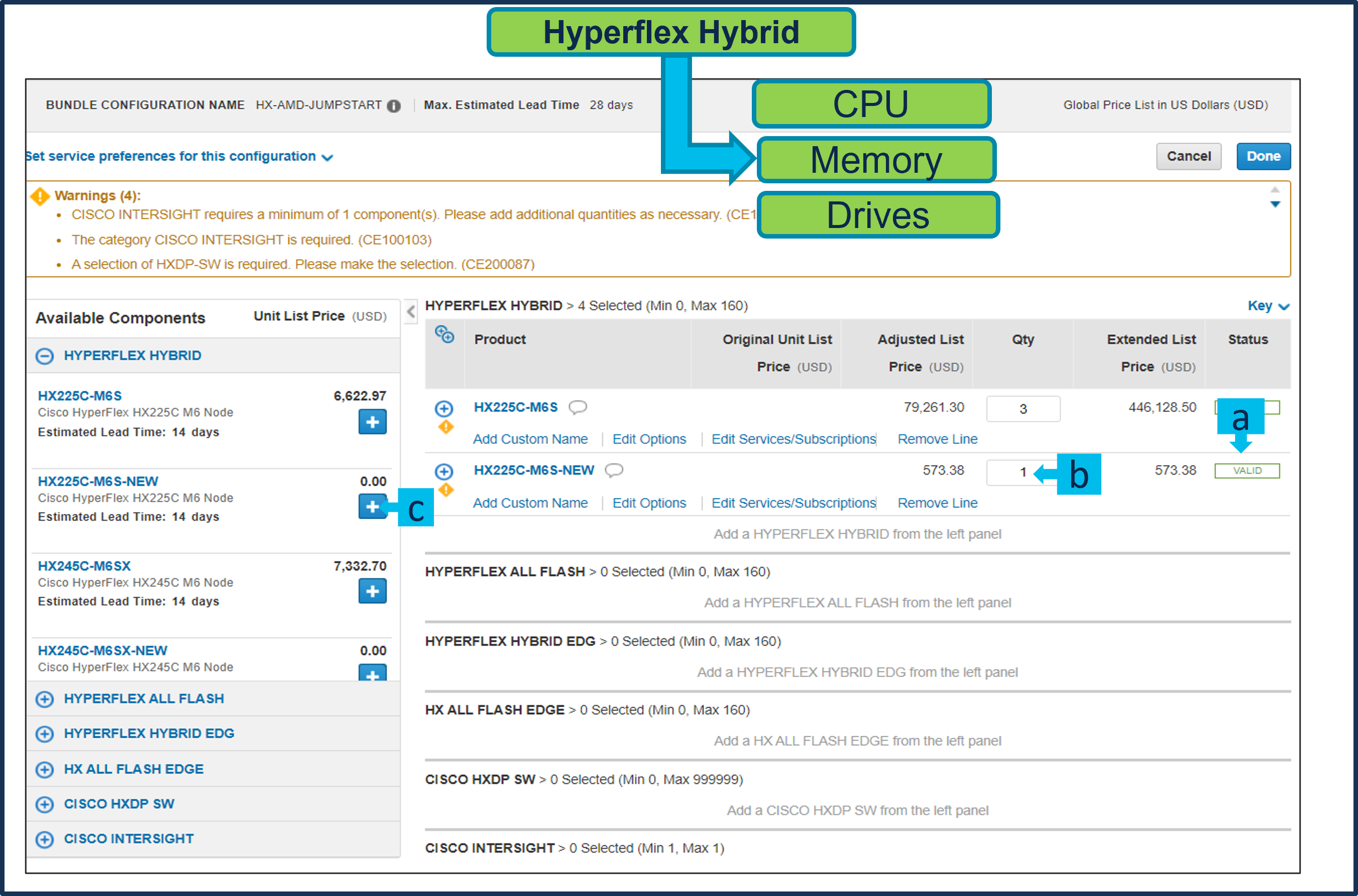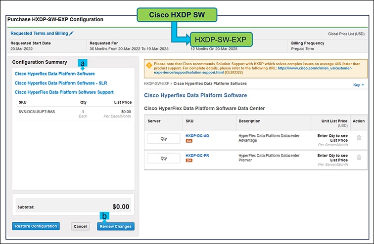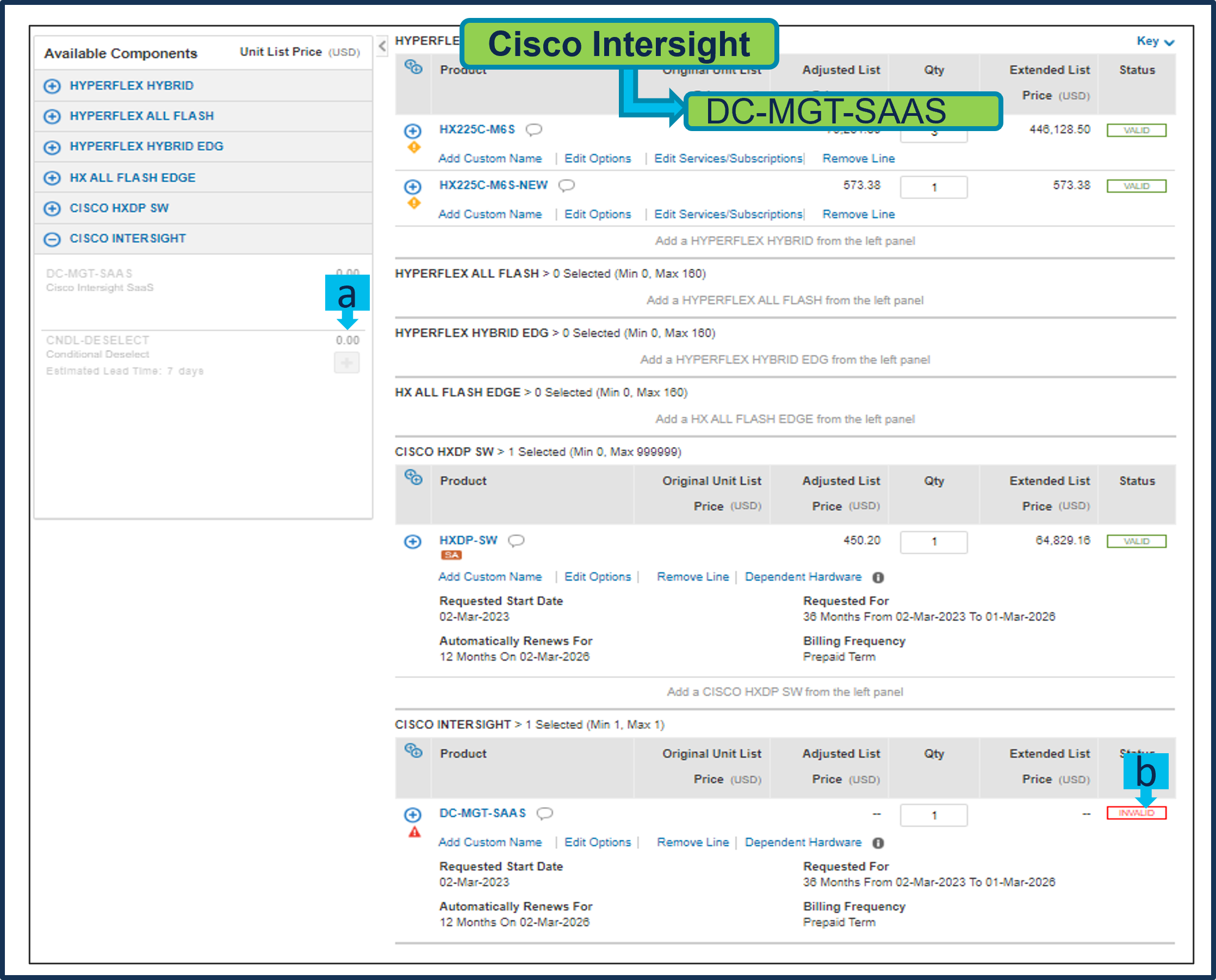 リスト ページで、SKU、PID、製品の説明、または製品ファミリ(HCIX-M7-MLB など)を入力して、この見積の基本設定を行い、 HX-M6-MLB注文する HCI 製品を検索します。