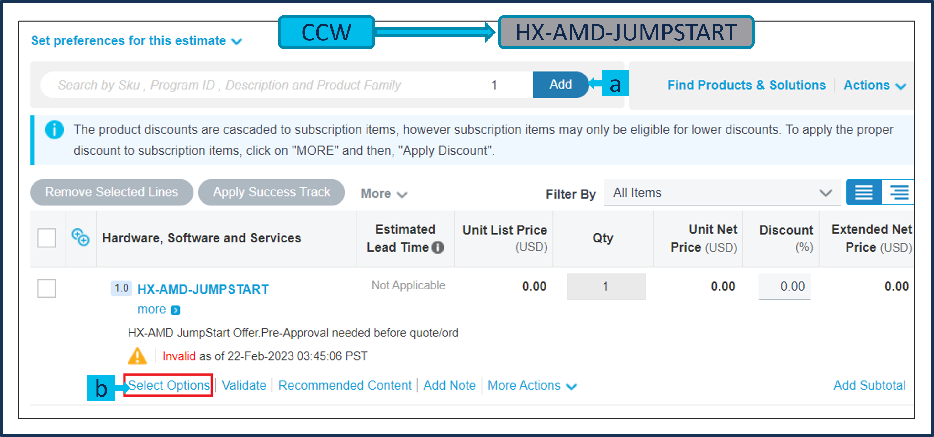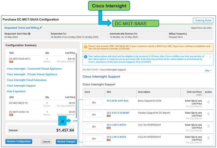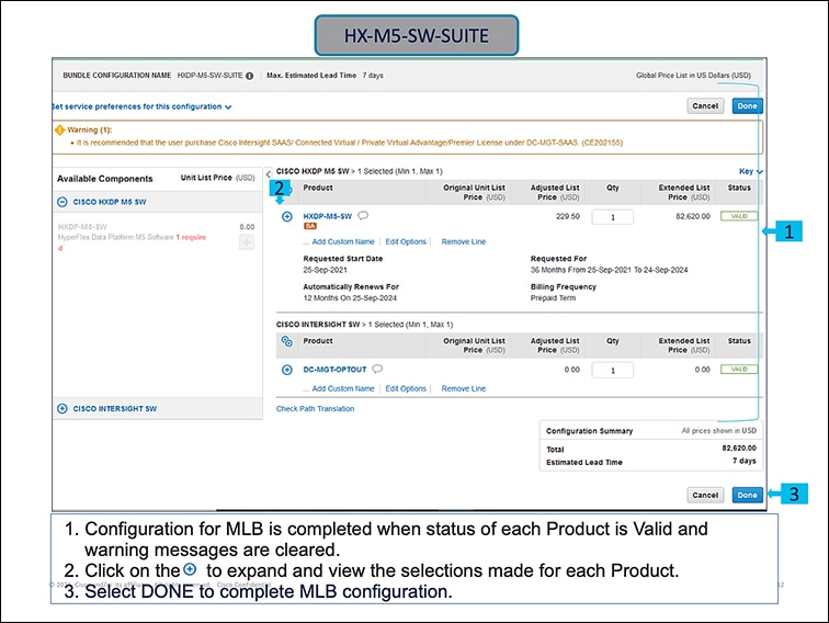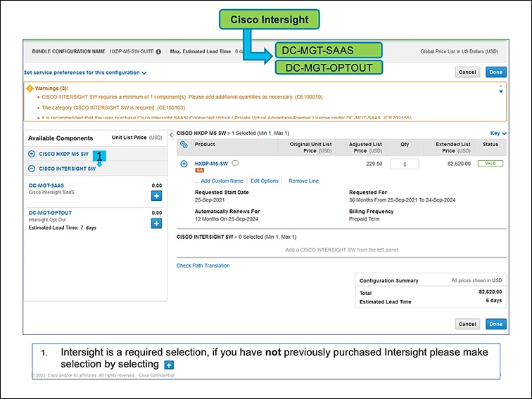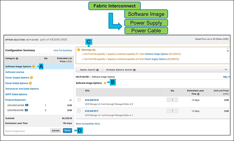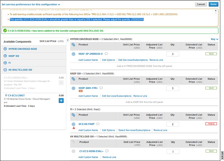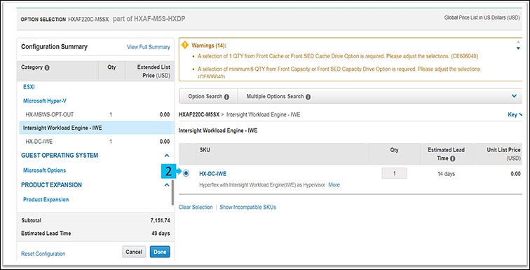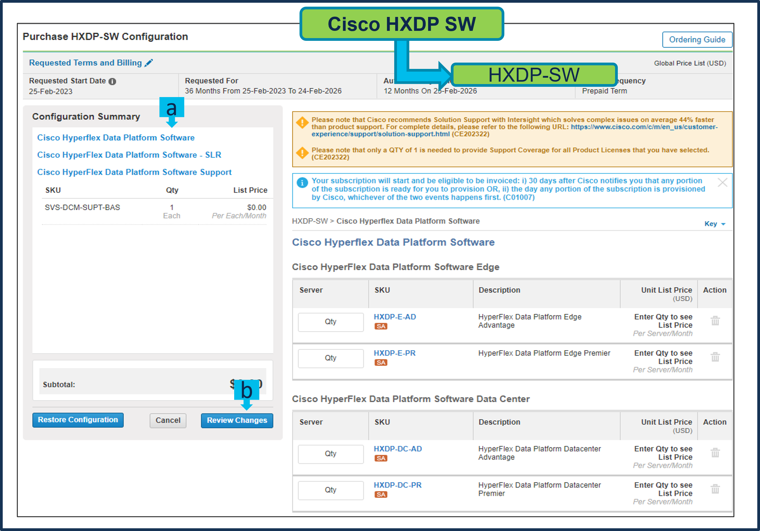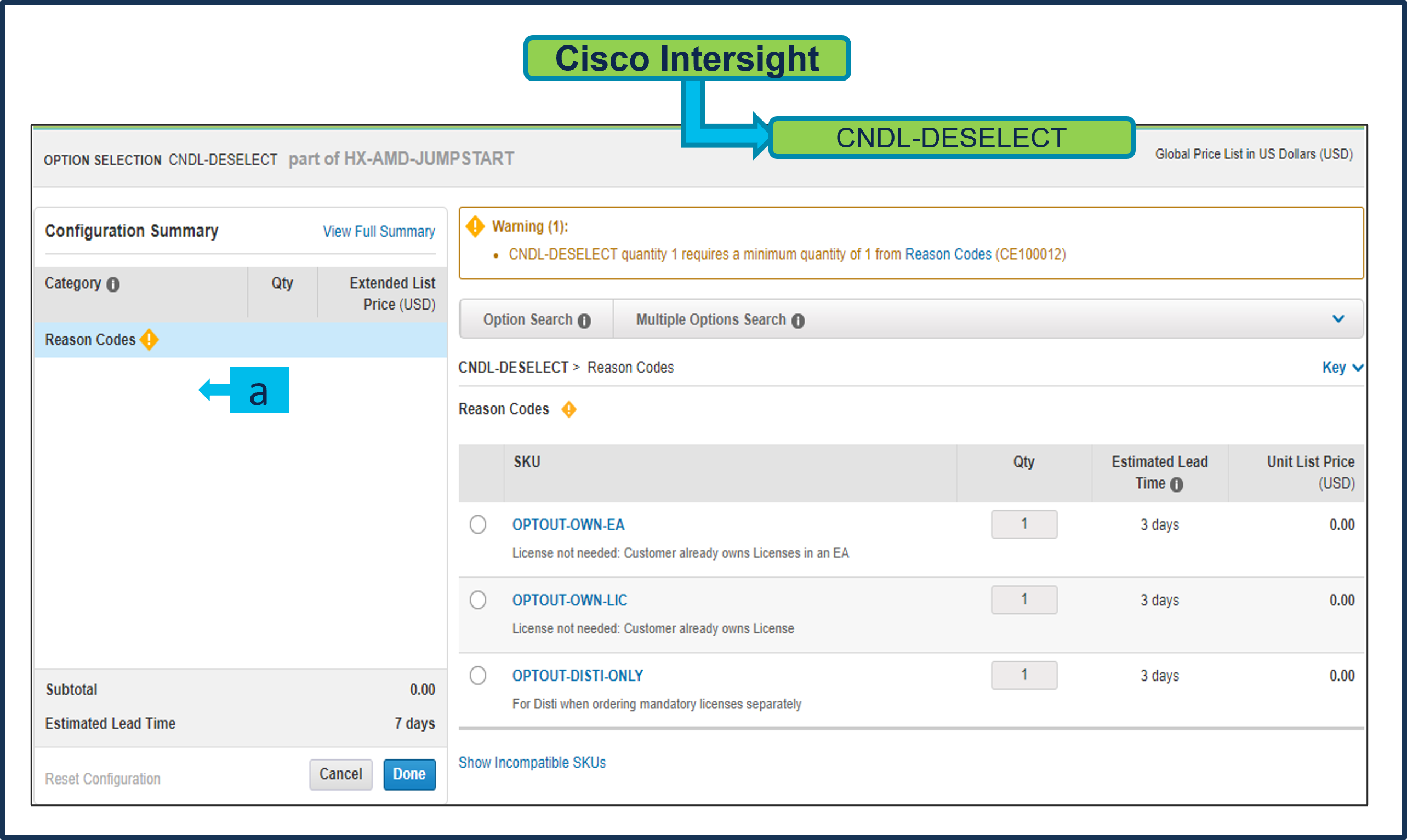 リスト ページで、SKU、PID、製品の説明、または製品ファミリ(HCIX-M7-MLB など)を入力して、この見積の基本設定を行い、 HX-M6-MLB注文する HCI 製品を検索します。