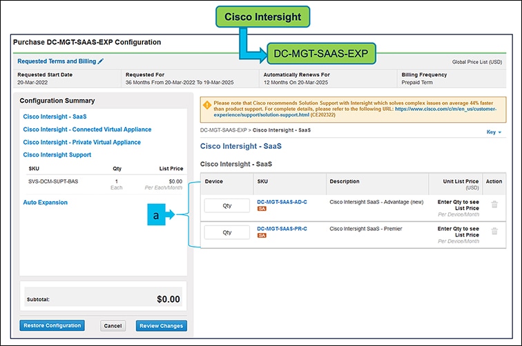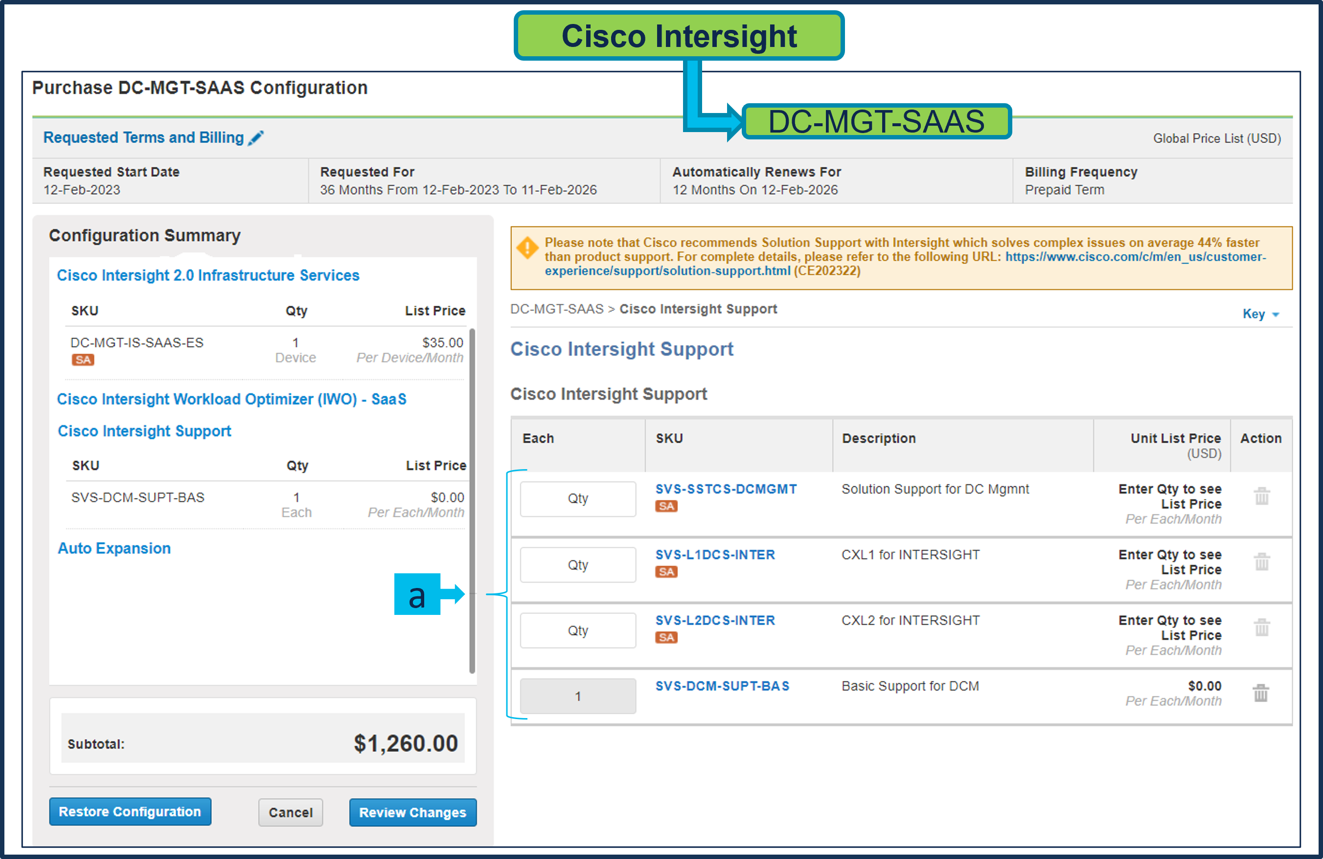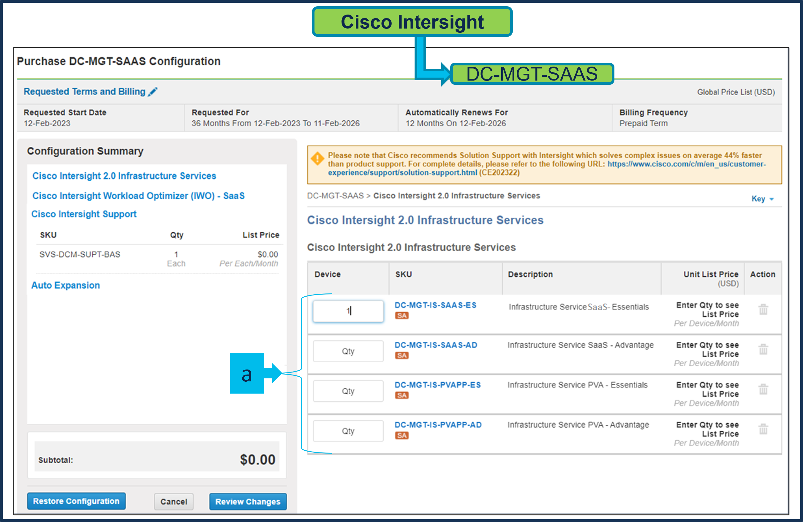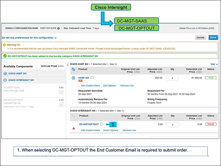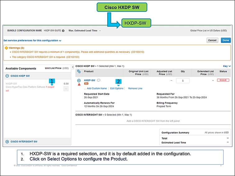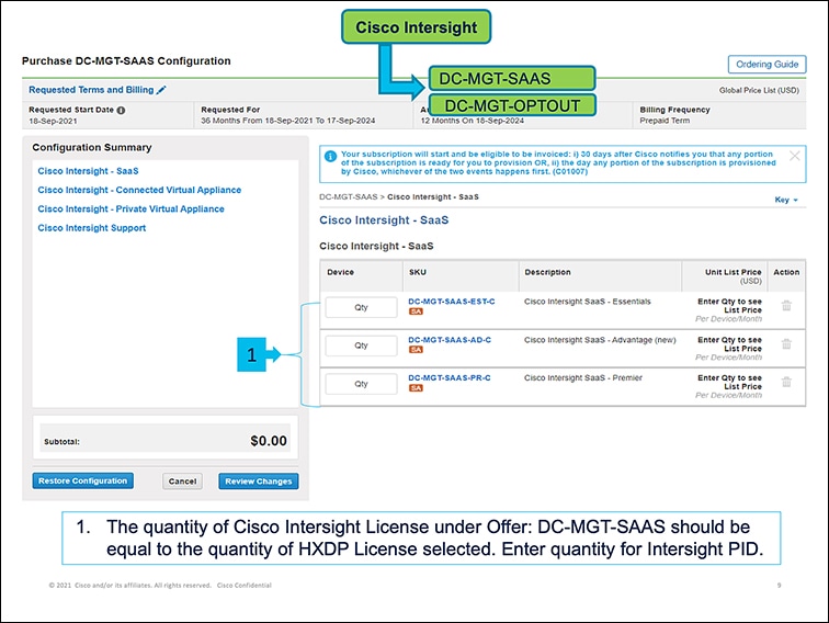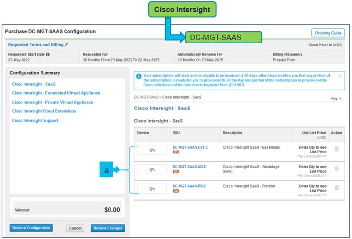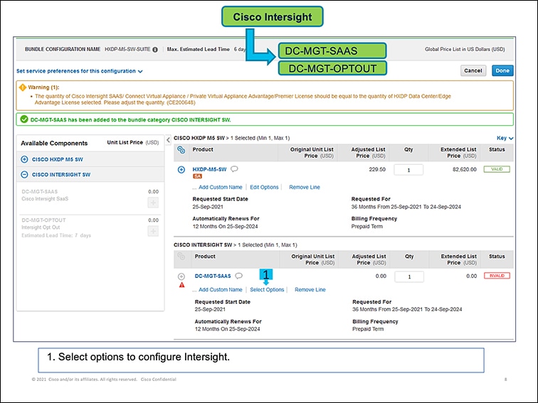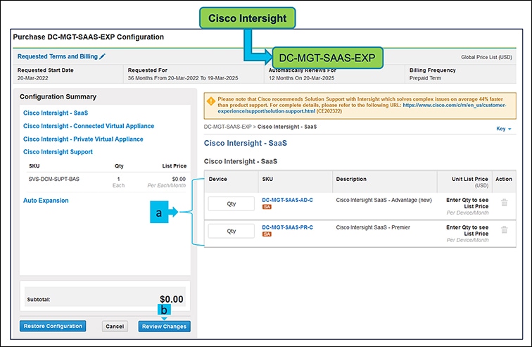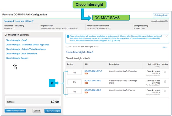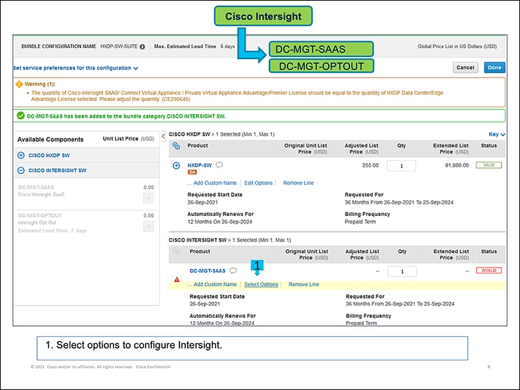 リスト ページで、SKU、PID、製品の説明、または製品ファミリ(HCIX-M7-MLB など)を入力して、この見積の基本設定を行い、 HX-M6-MLB注文する HCI 製品を検索します。