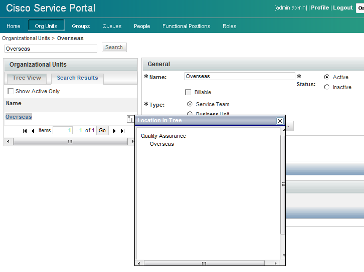 組織単位は、その組織単位のメンバ(人)が含まれている場合と、キューにリンクされている場合があります。実際は、新しい個人をシステムに追加する場合は、デフォルト(ホーム)の組織単位を選択する必要があります。