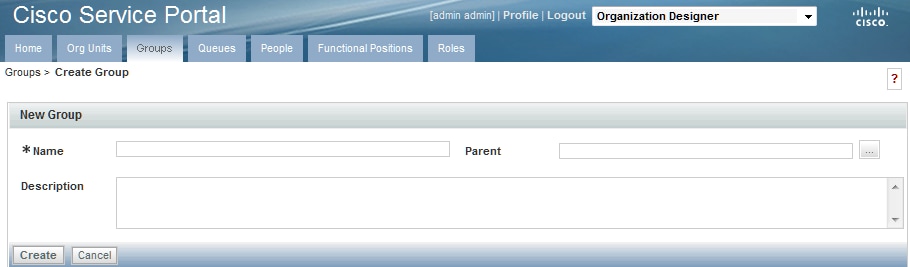 Organization Designer の機能により、人、組織、キュー、ロール、役職を管理するためのオプションへのアクセス権が付与されます。これらのオプションは、ディレクトリ統合(『 Cisco Service Portal Integration Guide 』を参照)やディレクトリ タスクの実行(『 Cisco Service Portal Designer Guide 』を参照)によって提供されるオブジェクトの管理機能を補足しています。オブジェクトレベルの権限とともに使用すると、特定の組織エンティティへの読み取り権や書き込み権がユーザに付与され、複数テナント環境で細かい制御が可能になります。