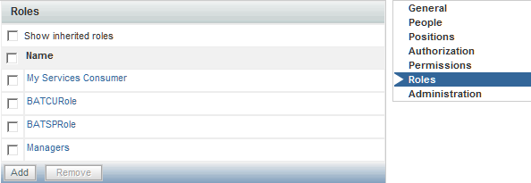 システム定義の標準の役職は削除できません。これは「グレー表示」のチェックボックスで示されます。使用中である場合も削除できません。これは [Used] カラムのチェックマークで示されます。ただし、使用されなくなった役職は削除する必要があります。不要な役職を削除するには、それらにチェックマークを付け、[Remove] をクリックします。