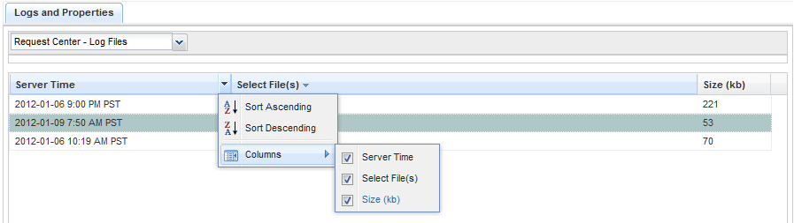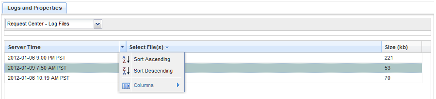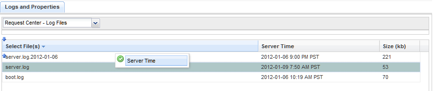 [Logs and Properties] タブ ページで、ファイル タイプを左上のドロップダウン メニューから選択します。