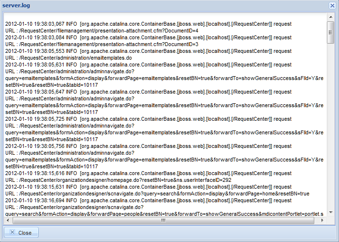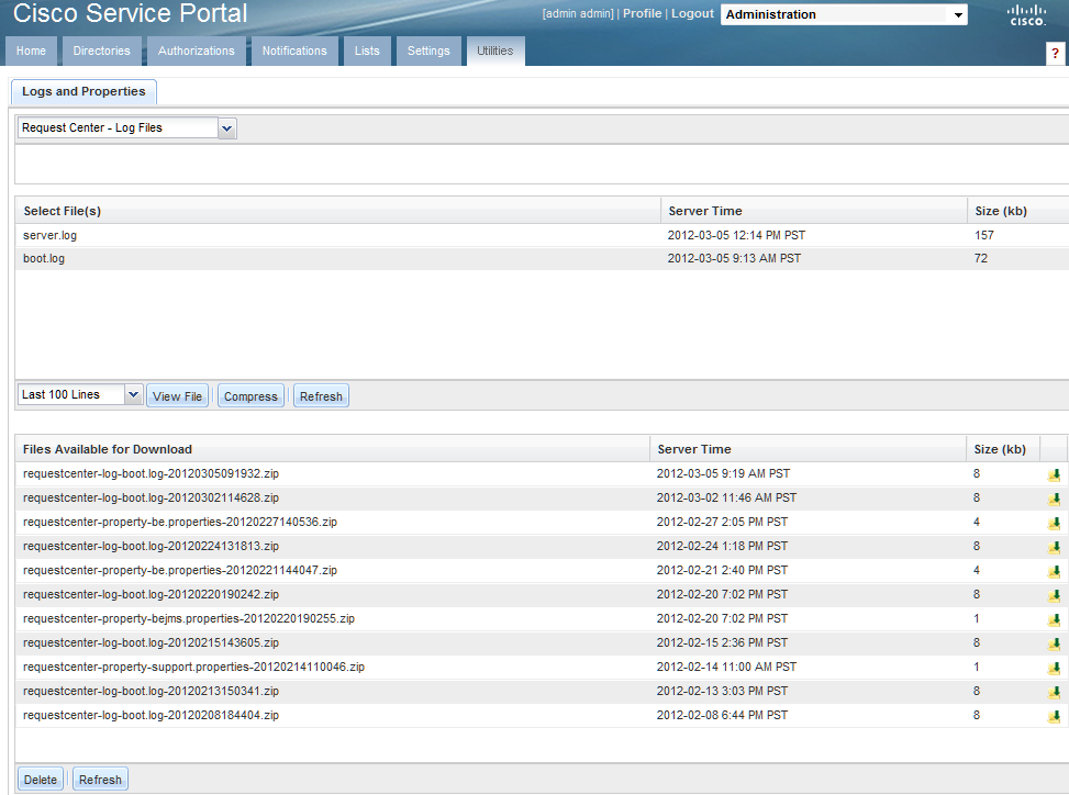 Administration では、システム ログやプロパティのファイルを、トラブルシューティングのために表示およびコピーできます。