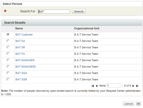 上記のとおりに [Person Popup] で定義すると、個人検索ポップアップは次のように表示されます。