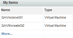 Service items ポートレットには、プロビジョニング済みサービス項目のうち最新の 5 件が表示され、現在のユーザに割り当てられているすべてのサービス項目を表示することもできます。サービス項目にアクセスする方法としては他にも、My Services モジュールのナビゲーション バーの [Service Items] タブがあります。