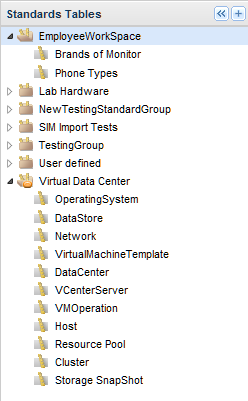 Lifecycle Center には、VMware 要求と一緒に使用する標準テーブルがいくつか事前に設定されています。これらの標準のデータは、手動で入力するか、既存の vCenter インスタンスからインポートできます。
