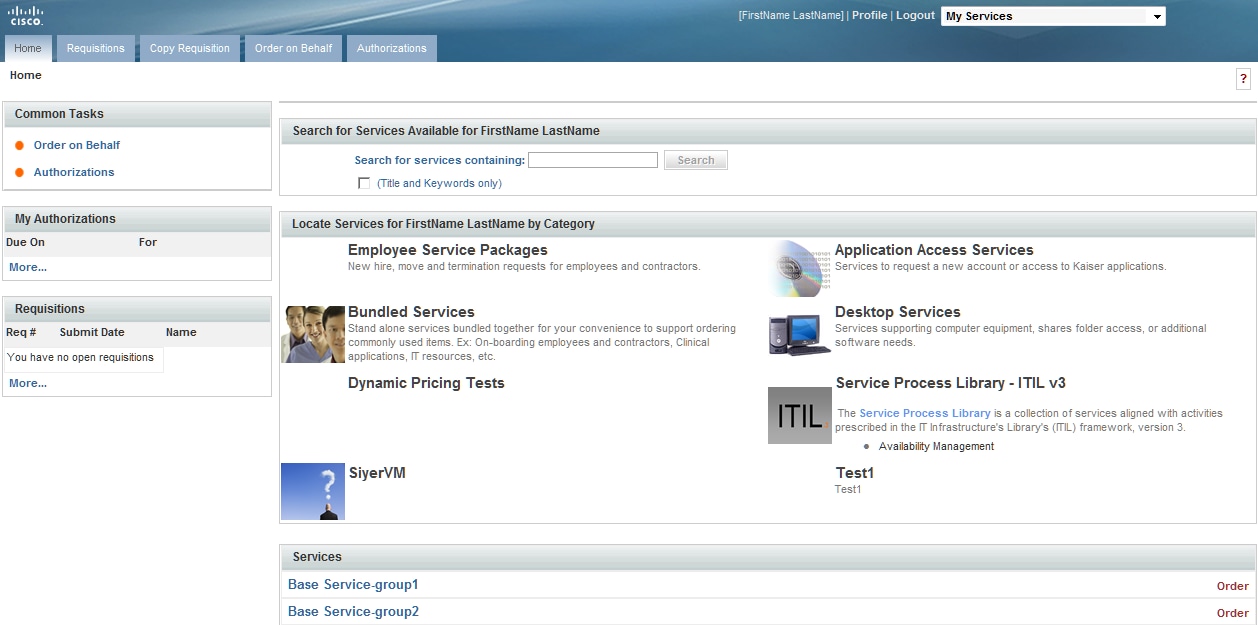 Requisition Entry ID がプロパティに提供されていると、対応する Requisition ID がサービス項目に関連付けられ、My Services および Service Item Manager に表示されます。