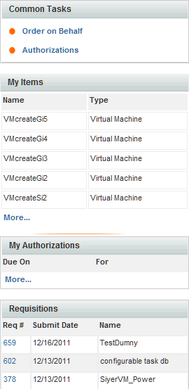 サービスをサービス タイプの項目と関連付けると、My Services のユーザは、ショートカットを使用して、以前サービスに割り当てられていたサービス項目に適用可能なサービスを順序付けることができます。ユーザは、My Services のカタログでサービスを検索しなくても、[My Items] ポートレットにサービス項目を表示できます。サービス項目が選択されると、ユーザに順序付けの権限がある関連サービスがすべて表示されます。
