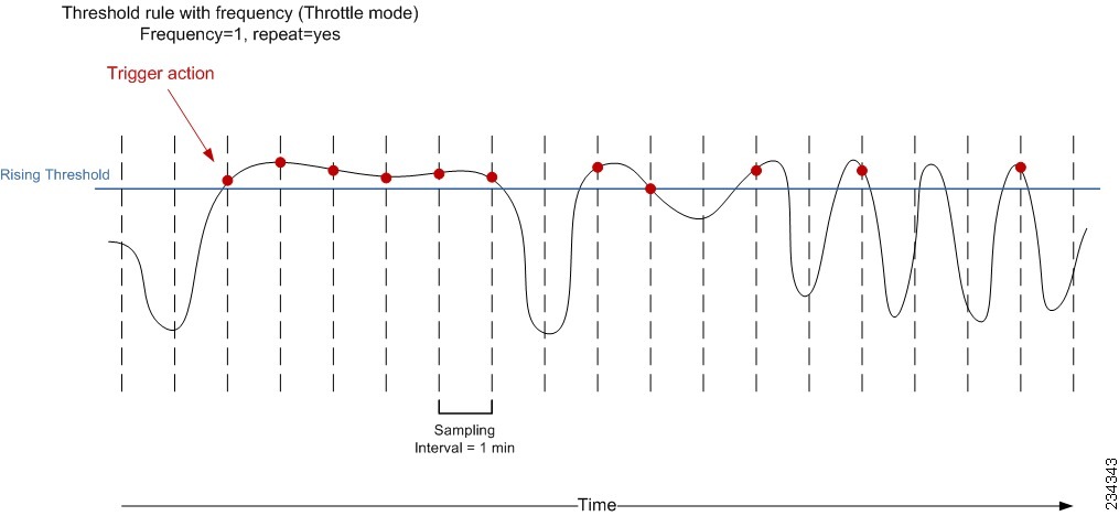 図 24-3 しきい値を超えたときに期間内で 4 回ごとにアクションをトリガーする