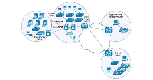 NAM は、さまざまなフォーム ファクタで利用できるため、導入に際しては高い柔軟性を発揮します。同時に、利用可能な NAM は、ネットワークの状態に関するモニタリング、測定、およびレポートを行ううえで最も効果的な場所に導入する必要があります。論理ネットワーク境界の入力ポイントまたは出力ポイントにあたる場所(集約レイヤ、コア、キャンパス エッジなど)はいずれも、そのパーティション内部におけるネットワークの動作を監視するうえで有効です。そのため NAM を導入する場所としては通常、境界に位置するこうした場所が適しています。