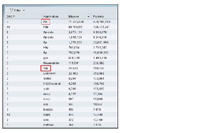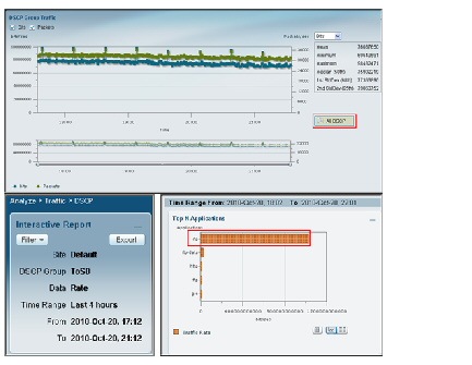 図 6-20 では、RTP と SIP が枠で囲まれています。これらのプロトコルは DSCP 0 に分類されていますが、音声トラフィックに関する標準的な分類は DSCP 46 および DSCP 24 であるため、DSCP 0 という分類は正しくありません。これは、音声トラフィックが一部、ネットワーク上で誤って分類されていることを示しています。またブランチ NAM を表示することで、音声トラフィックの分類が誤っていないかどうかを検証することもできます。