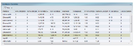 5. 物理インターフェイスおよび仮想インターフェイスについてのテーブルには、VM 間のトラフィックに関する使用率が表示されます(図 6-28)。各仮想インターフェイスが接続する VM はただ 1 つであるため、このデータを見れば、いずれの VM がスイッチ リソースを使用しているのかを知ることができます。さらに、ホストおよびカンバセーションについてのテーブルでは、リソースが使用されている要因を特定することができます。