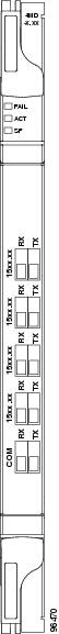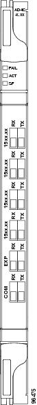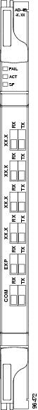 OSCM カードには、前面プレートに 1 セットの光ポートと 1 つのイーサネット ポートがあります。このカードは、スロット 8 および 10 で動作します。 |
